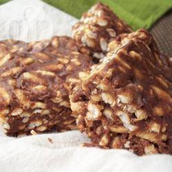 Rice bubbles and chocolate chips are held together with golden syrup, sugar and peanut butter. Easy to make, easy to eat.