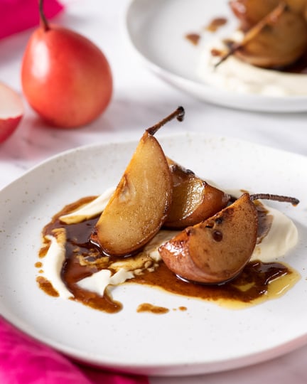 * Make a delicious syrup by combining ¼ cup golden syrup with ¼ cup molasses. Spoon over pears before serving if desired or serve warm to drizzle over sliced cake and cream.